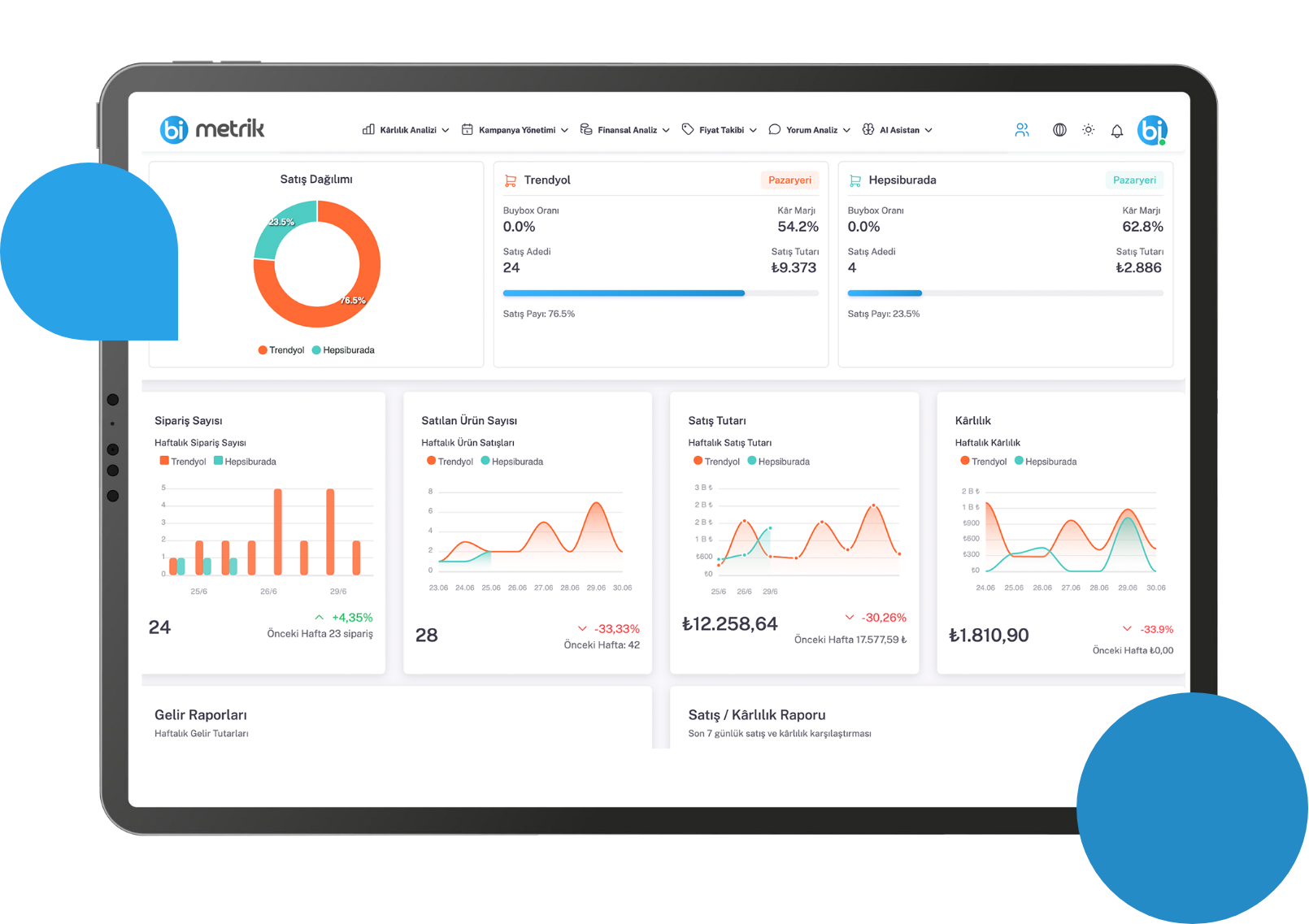 Farklı platformlar, onlarca kategori, yüzlerce ürün… Eskiden herkes kendi verisini manuel toplardı. Şimdi tüm ekip sabah raporlarını Bimetrik’ten alıyor. Hatalı fiyat, yorum krizi, düşen kampanya performansı gibi sorunlar daha olmadan tespit ediliyor. En önemlisi, veriye dayanarak karar almak artık sistemli hale geldi. Bimetrik her gün ekibimizin sessiz ama en hızlı çalışan üyesi gibi.